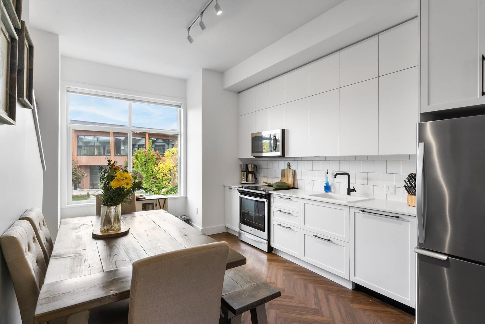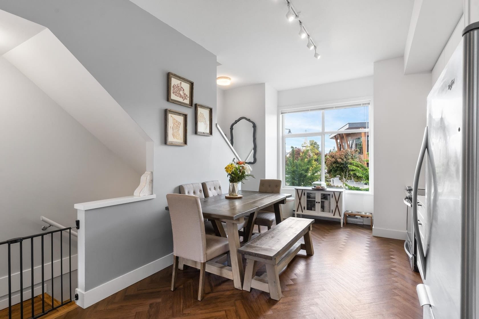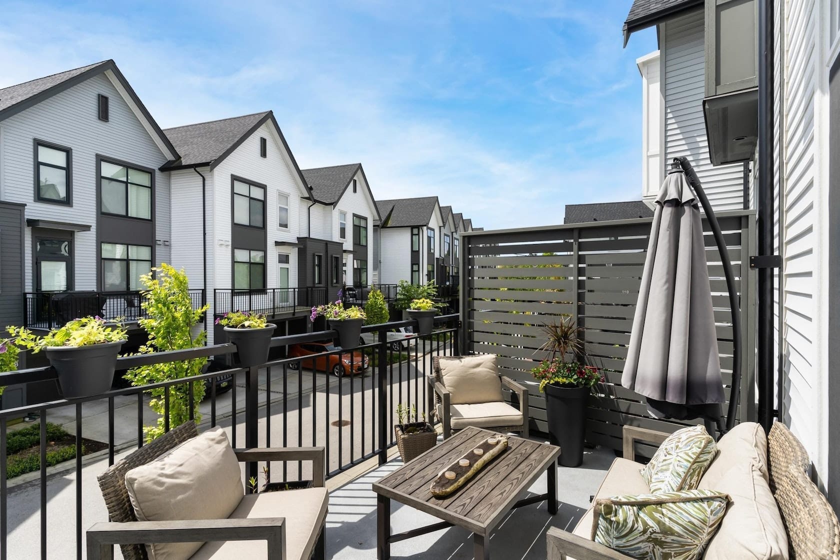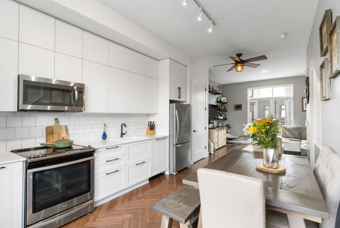 A modern townhouse in Surrey is available for rent. This 2 beds, 2 baths unit has lots of natural lights. It has easy access to schools, restaurants and transit. Pets are welcome.