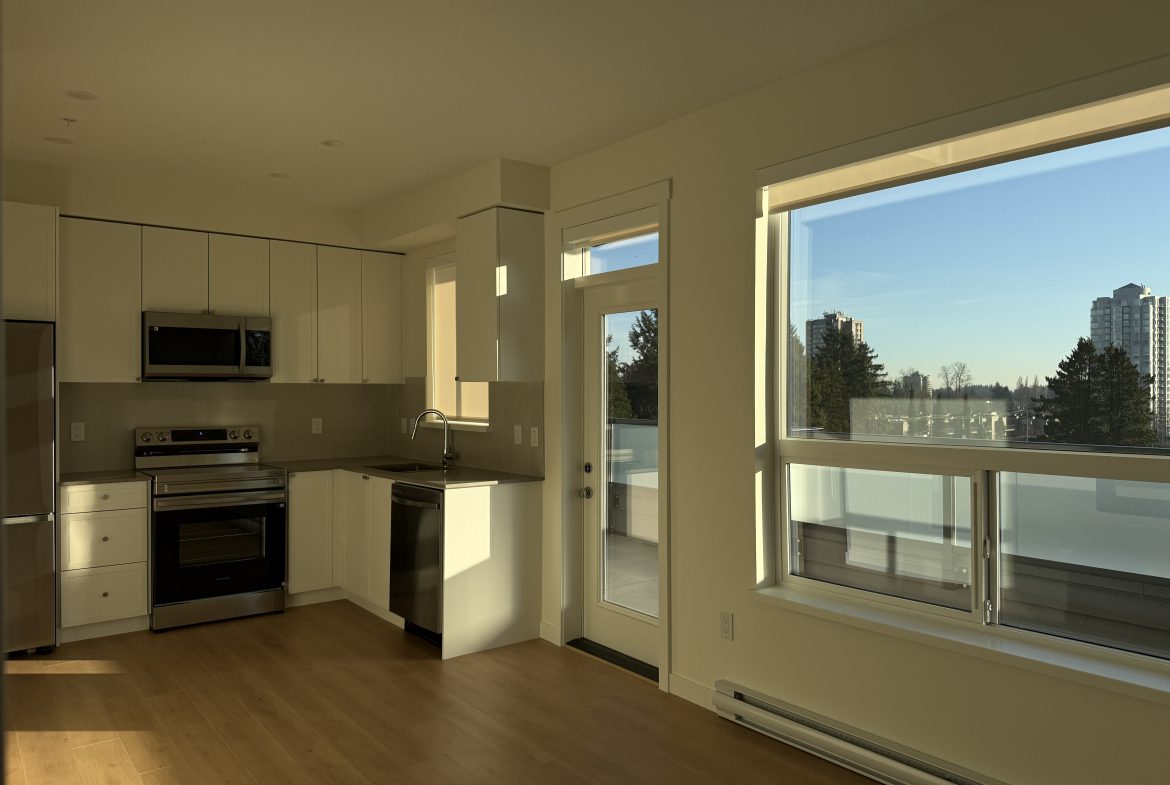 Brand new 1 Bed 1 Bath plus den Condo is available for rent in Surrey. This condo is on the 5th floor with a beautiful view. It has easy access to schools, parks, restaurants, transit and more. A Parking and a locker is included in the rent. Amenities including a gym, Yoga room, a party room and a playground. Pets are welcome.