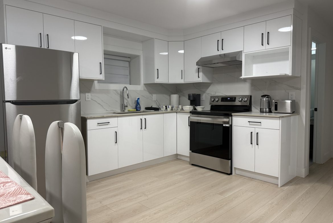 Brand new 2 Beds 1 Bath basement suite in Surrey is available for rent. This unit has easy access to schools, restaurants and transit. It comes with a separate laundry. AC is available. Pets are welcome. Utilities are 1/3 of the whole house.
